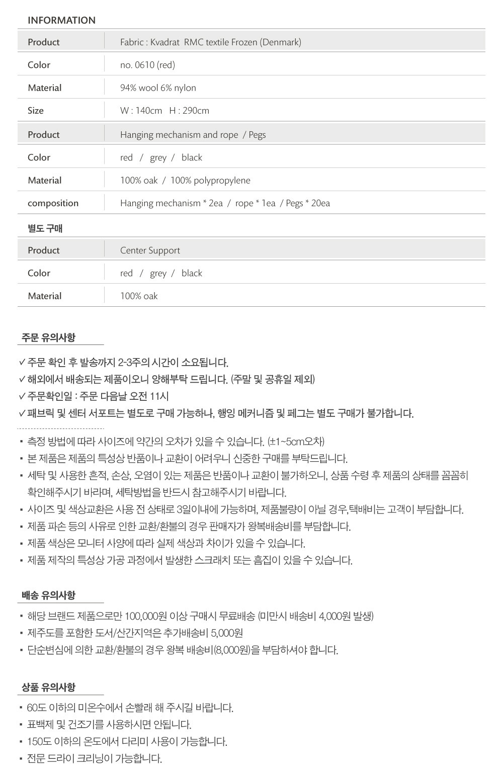 치수 : W 140 cm x H 290 cm